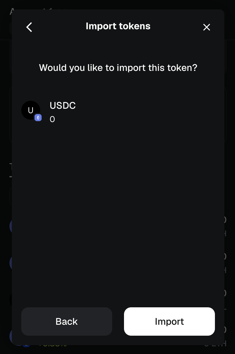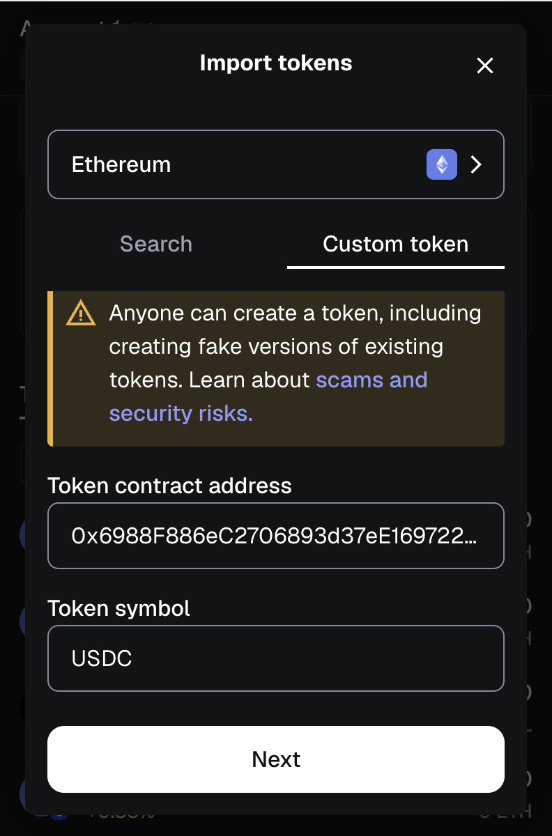 To add USDC ETHEREUM tokens to the wallet, do the following: